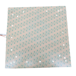 Mounting: Pre-applied 3M Adhesive Backing – Mounts between the black bed plate and the silver aluminum frame. REMOVE THE STOCK 310x310MM DC BED HEATER BEFORE INSTALLATION