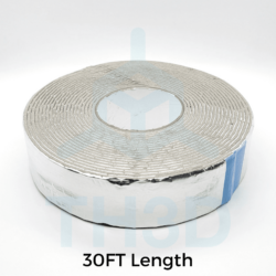 Stick this to the bottom of your bed to insulate for quicker heating, less heat loss, and more even heating of your printer bed. The strips are ~50mm wide (+/- 1.0mm) and self-stick to the surface they are going on. Cut to any length you want, works on all heated beds.
