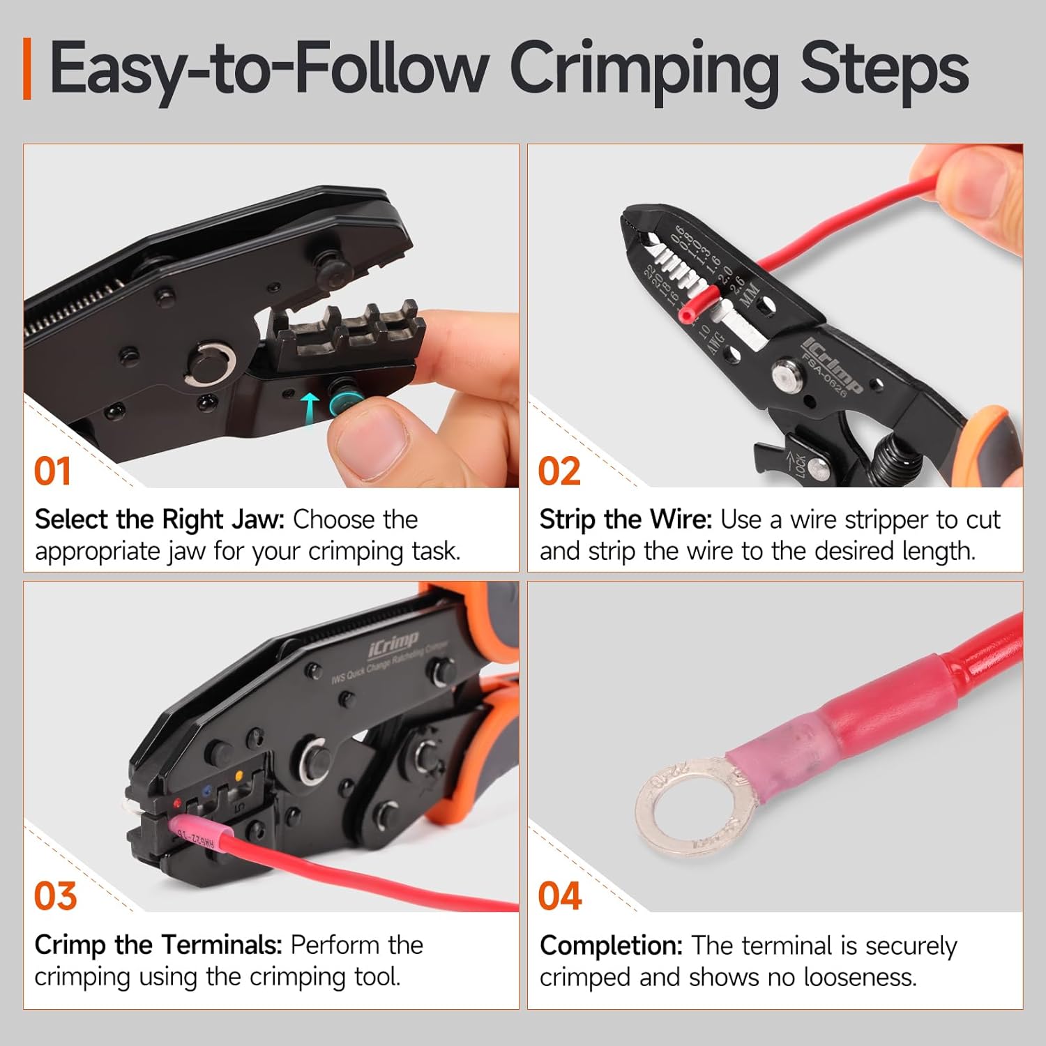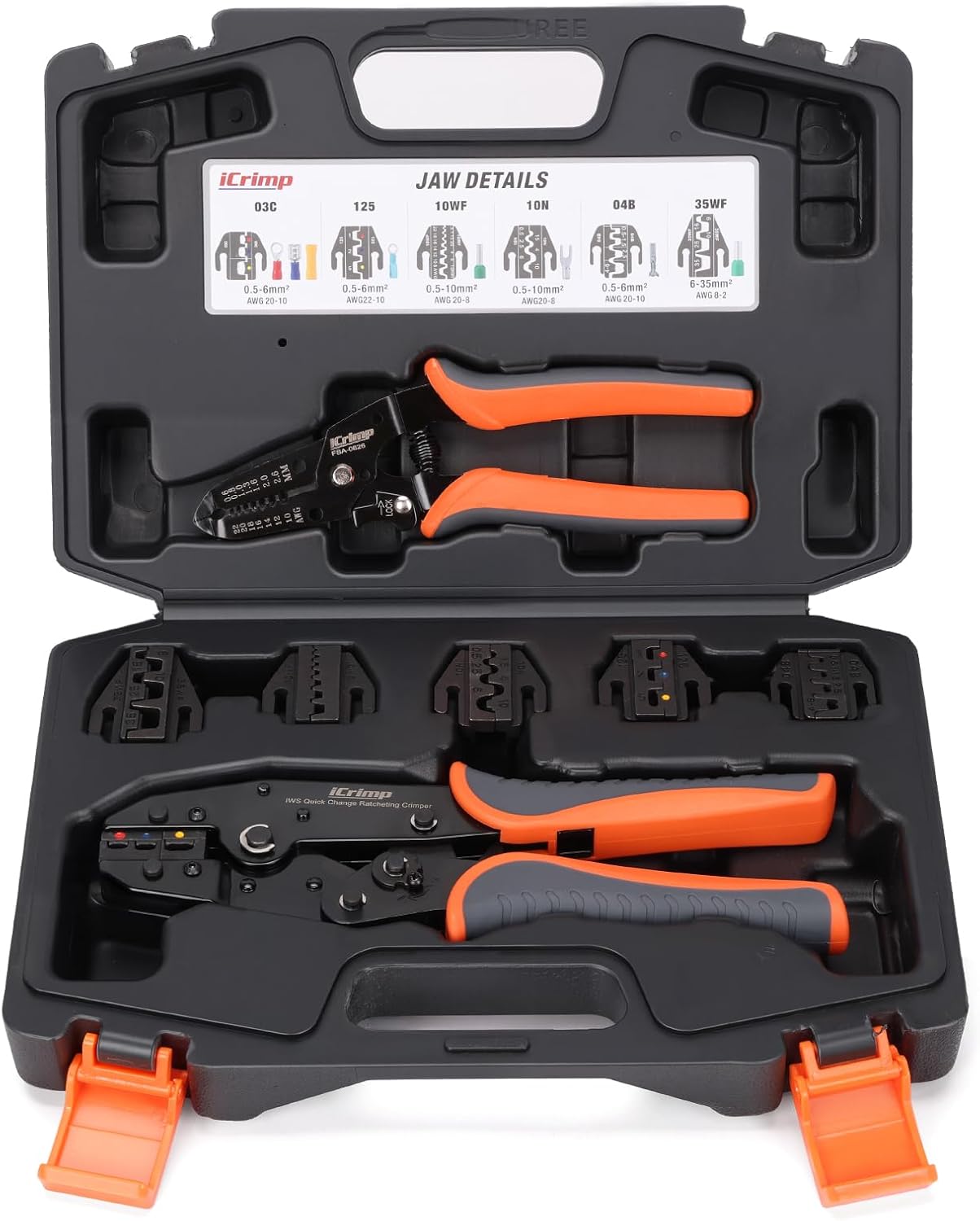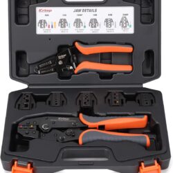 iCrimp Ratcheting Crimping Tool Set 8 PCS – Quick Exchange Jaw for Heat Shrink, Open Barrel, Insulated and Non-Insulated Ferrules AWG 20-2