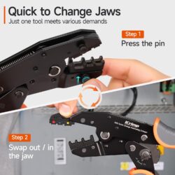 「8 PCS CRIMPING TOOL SET」Includes 1 ratcheting crimper, 1 wire cutter&stripper, 6 quick exchange jaws in a convenient storage case